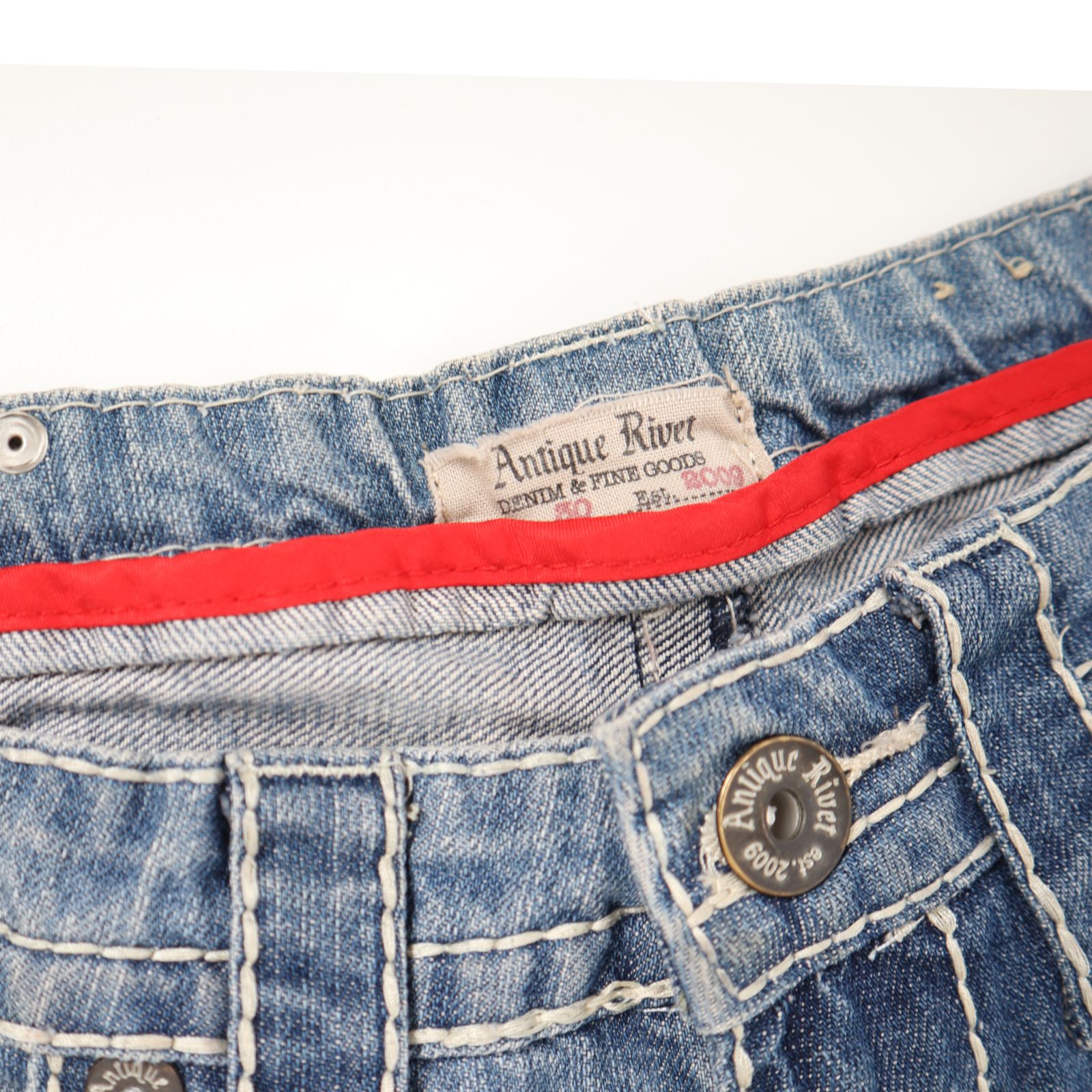 กางเกงเอวต่ำดีเทลแต่งขาด-สียีนส์