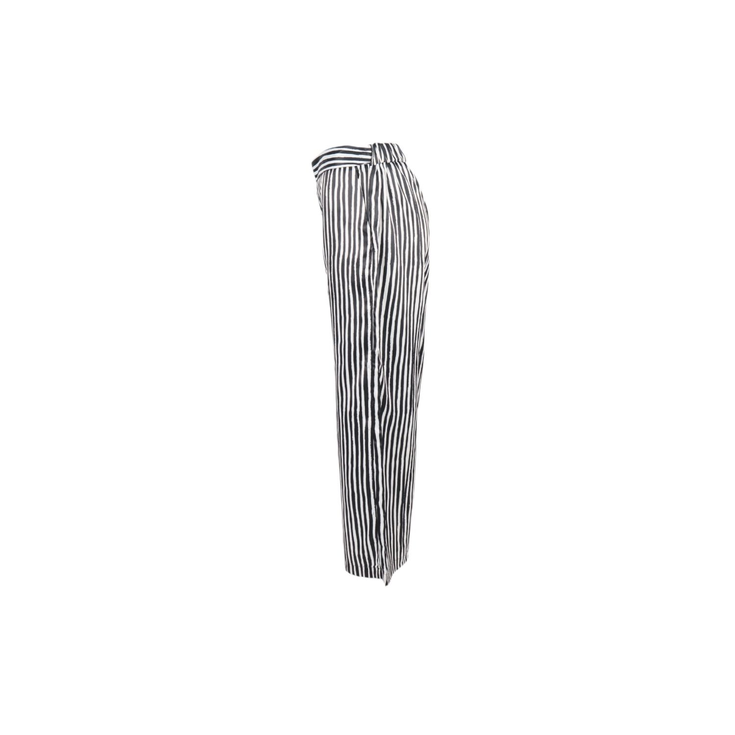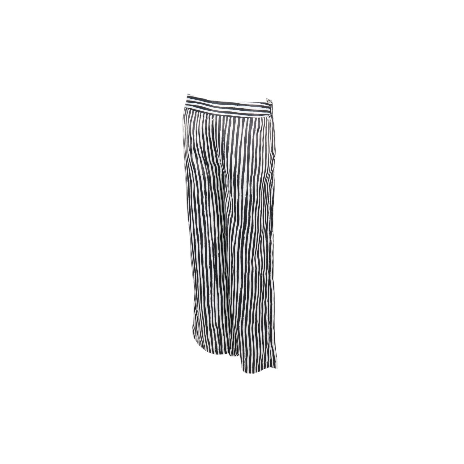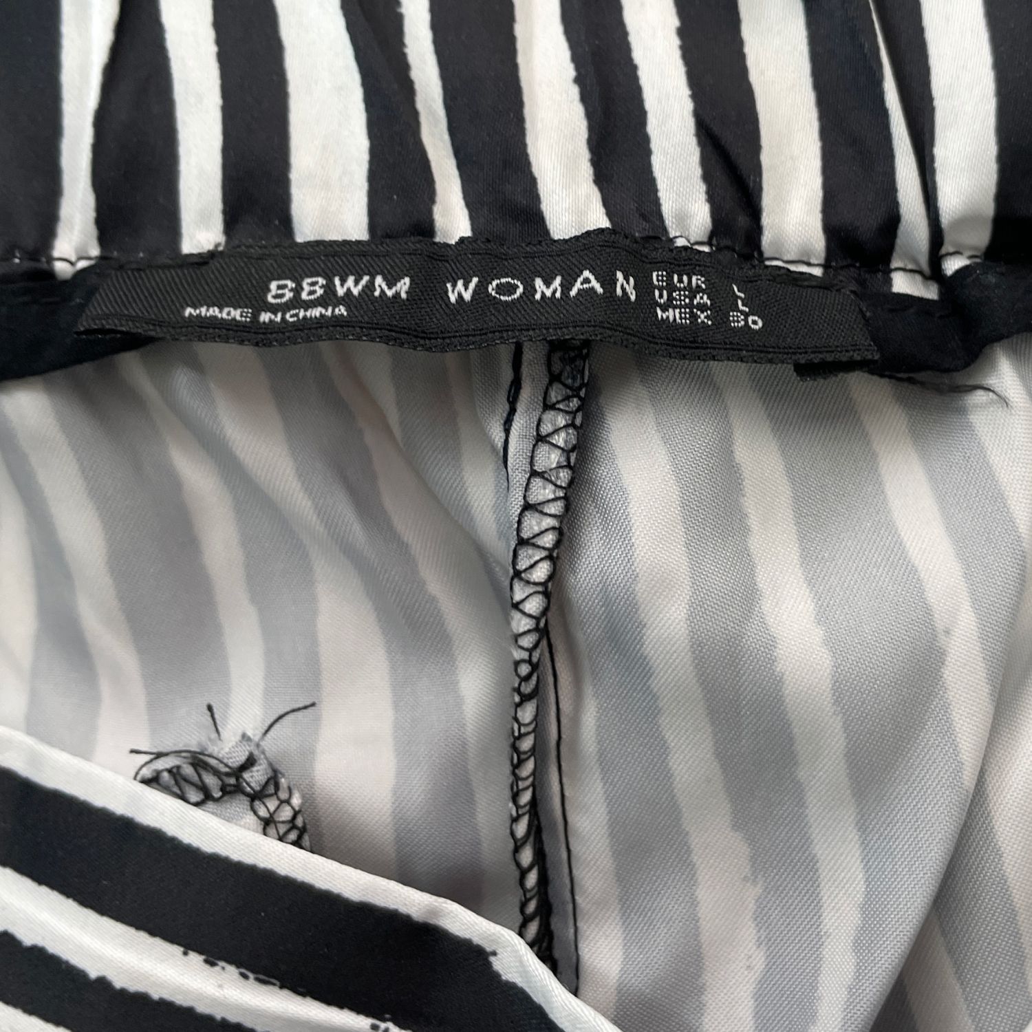 BBWM WOMAN-กางเกงขากระบอกเอวยืดลายขวางขาวดำ-สีขาว
