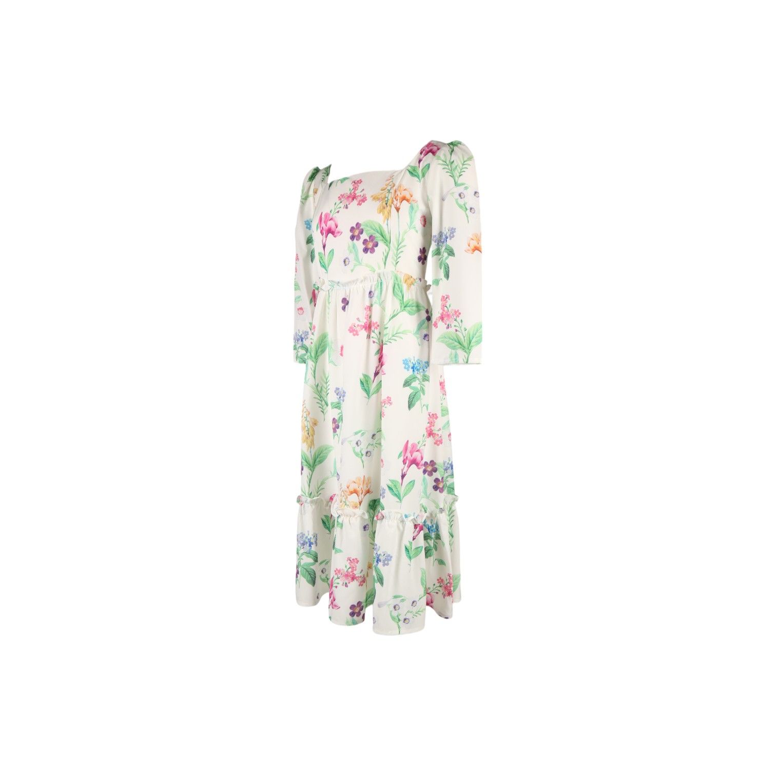 Beidi Studio-เดรสยาวแขนยาวคอเหลี่ยมลายดอกไม้-หลากสี