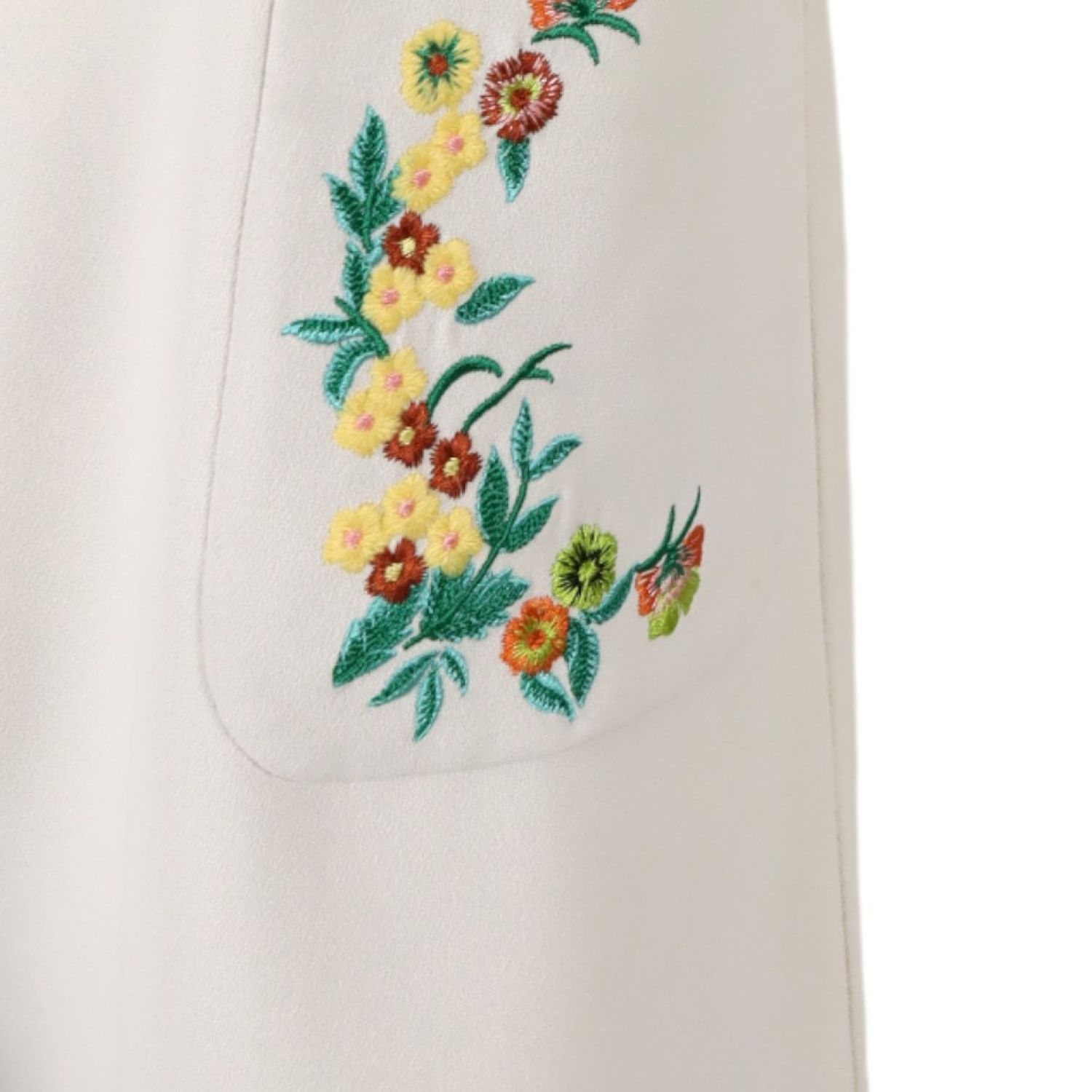 JASPAL-จั๊มสูทขายาวปักลายดอกที่อก-สีขาว