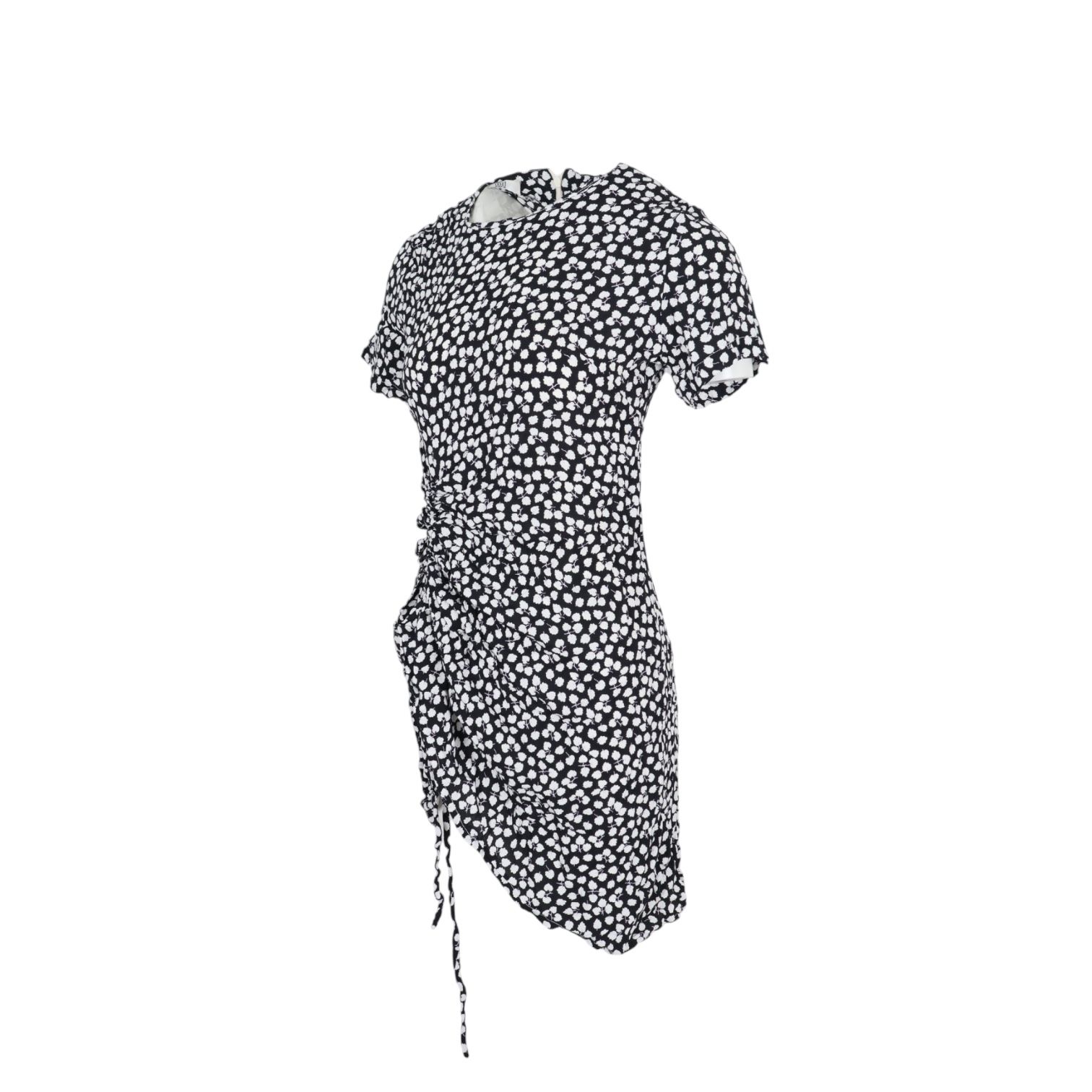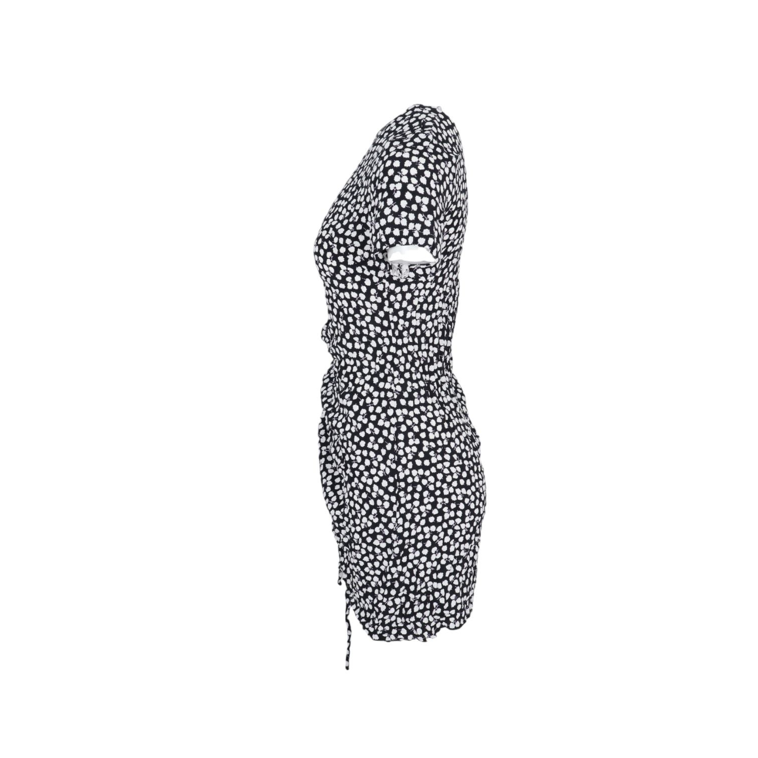 KARN-เดรสดำลายดอกขาวดีเทลเชือกรูด-สีดำ
