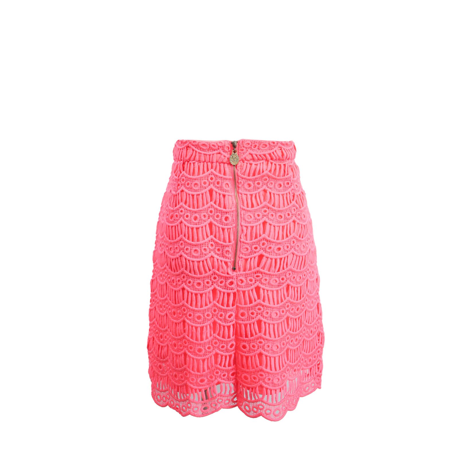 กระโปรงทรงตรงลูกไม้-สีชมพู
