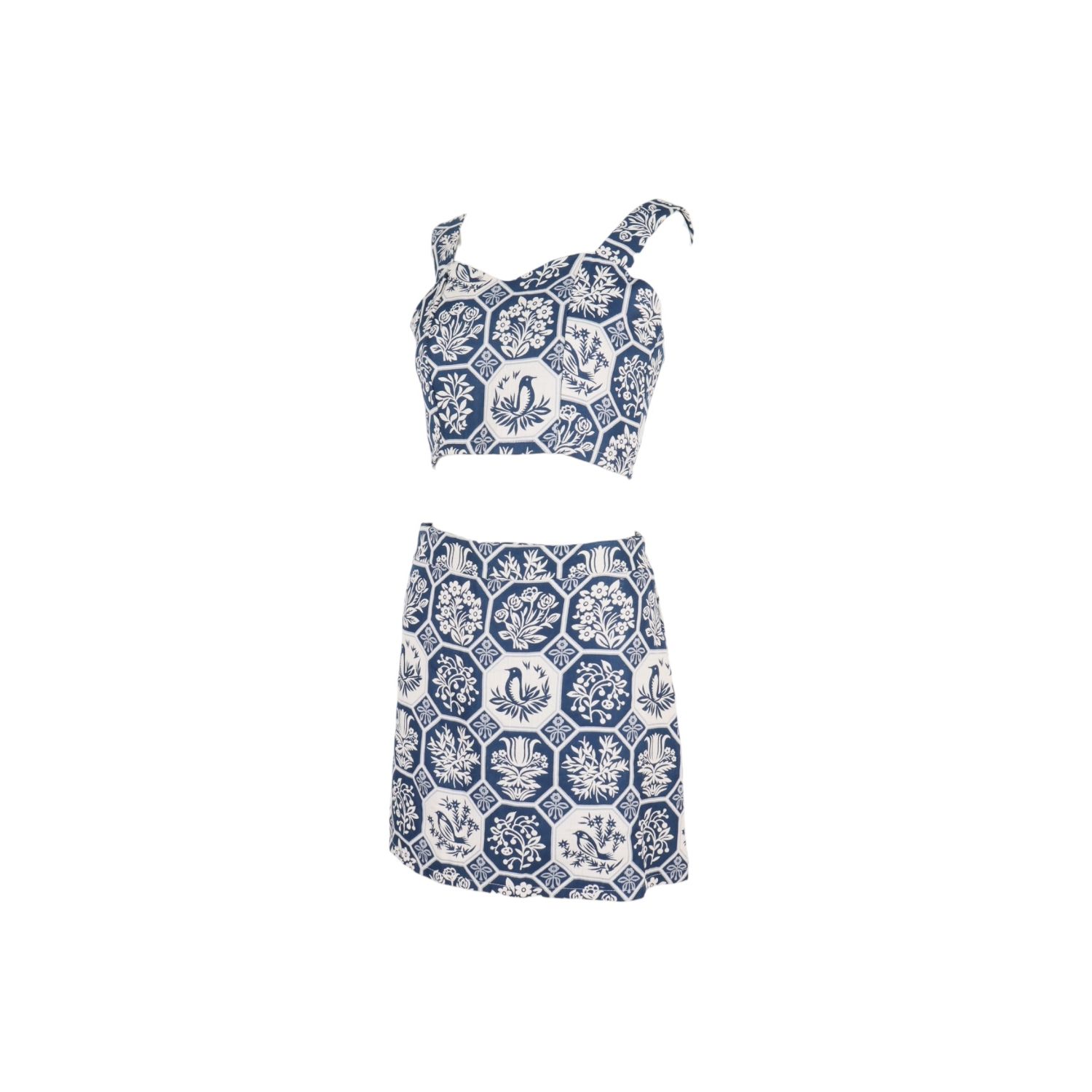 Nokara-ชุดเซ็ทเสื้อสายเดี่ยวและกระโปรงสั้นตกแต่งลายดอกไม้-สีน้ำเงิน