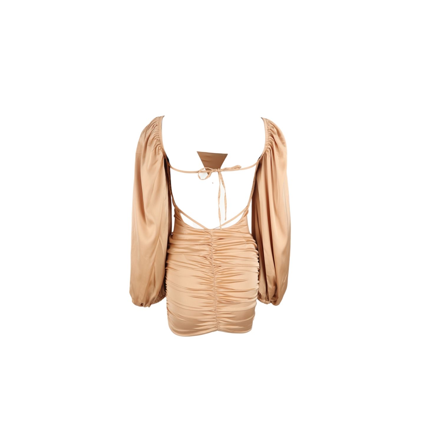 ohPOLLY-เดรสสั้นเปิดหลังแต่งจีบข้าง-สีน้ำตาล