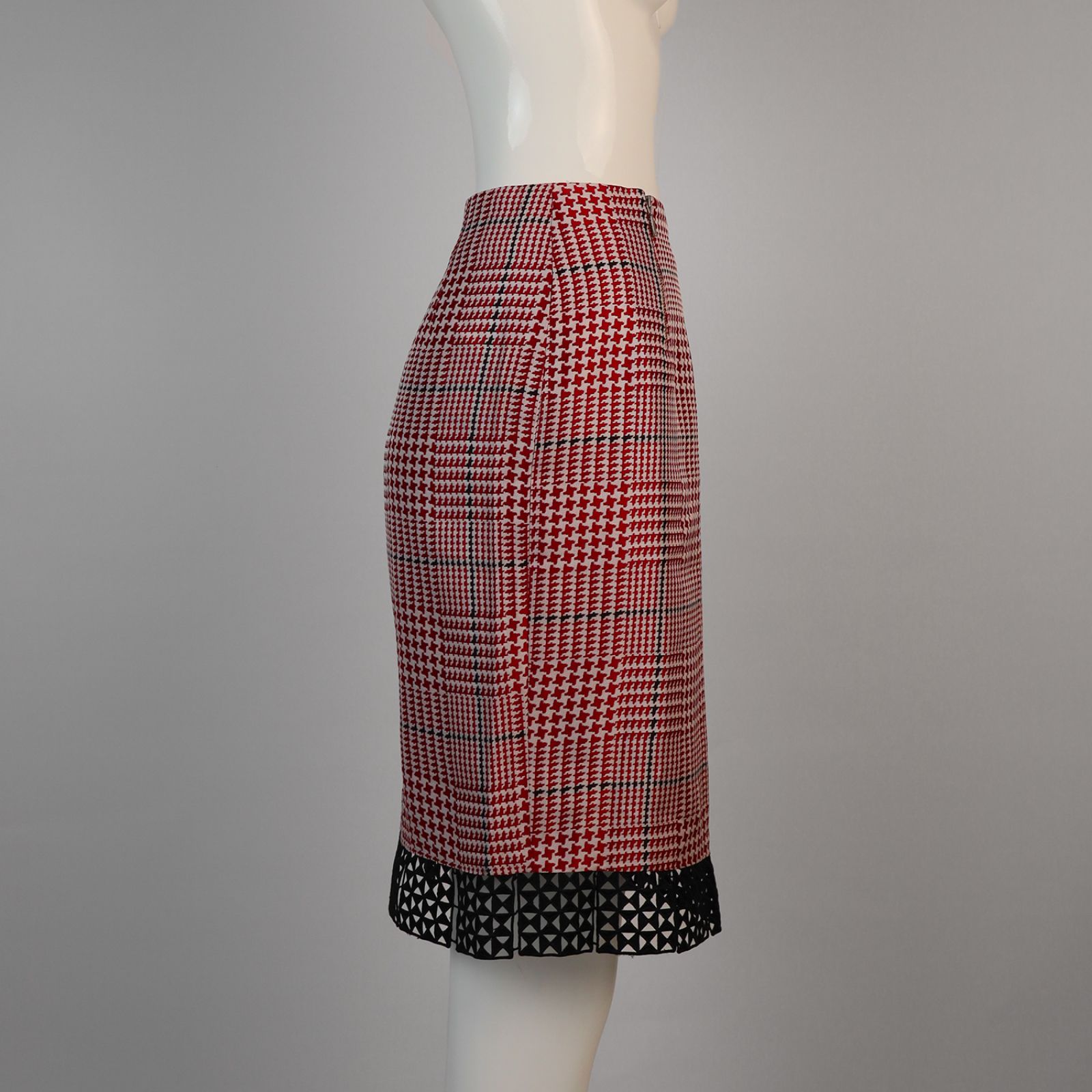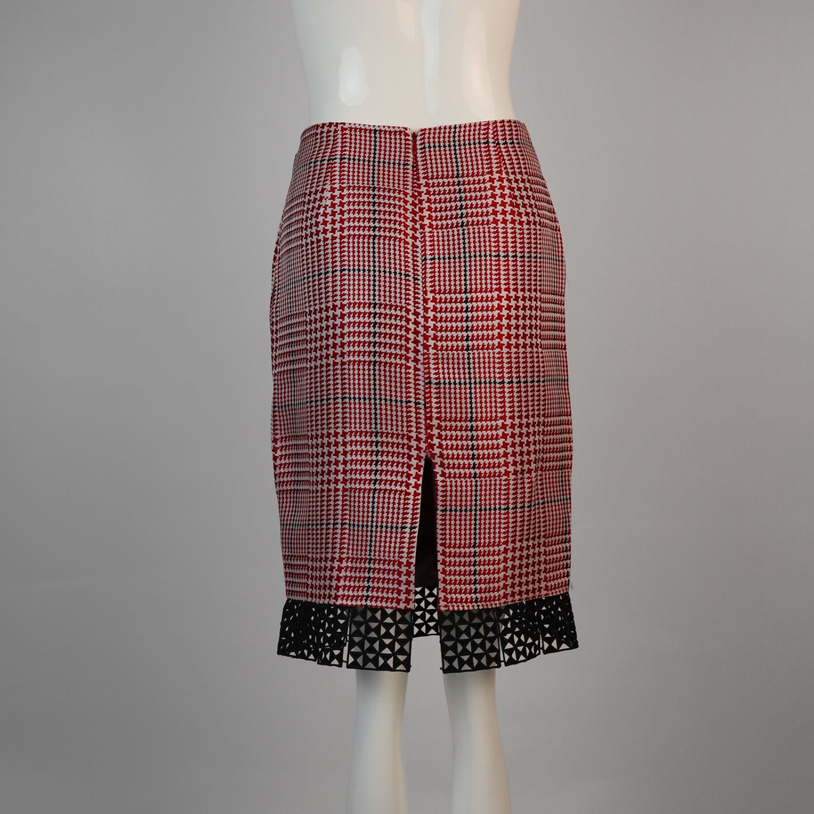 กระโปรงทรงเอลายสก็อตชายลูกไม้-สีแดง