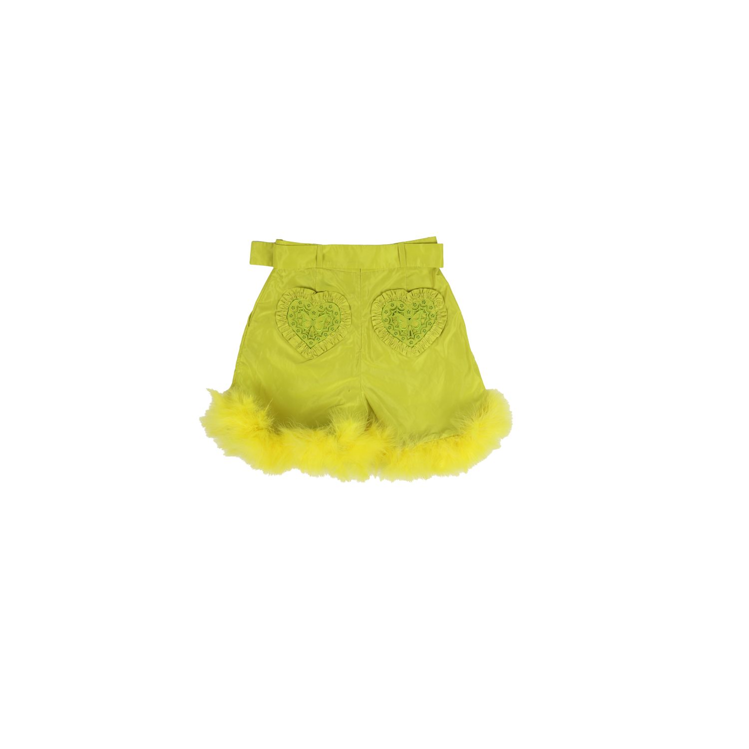 TANDT-กางเกงขาสั้นแต่งดีเทลขนฟูปลายขา-สีเหลือง